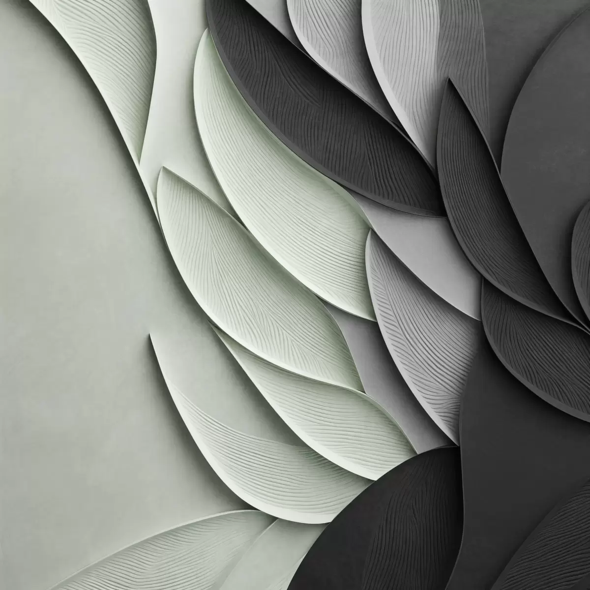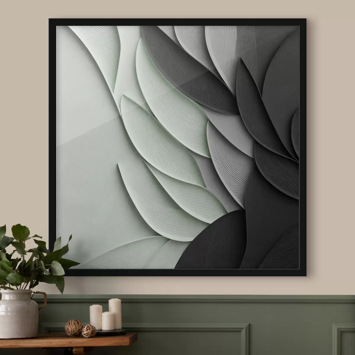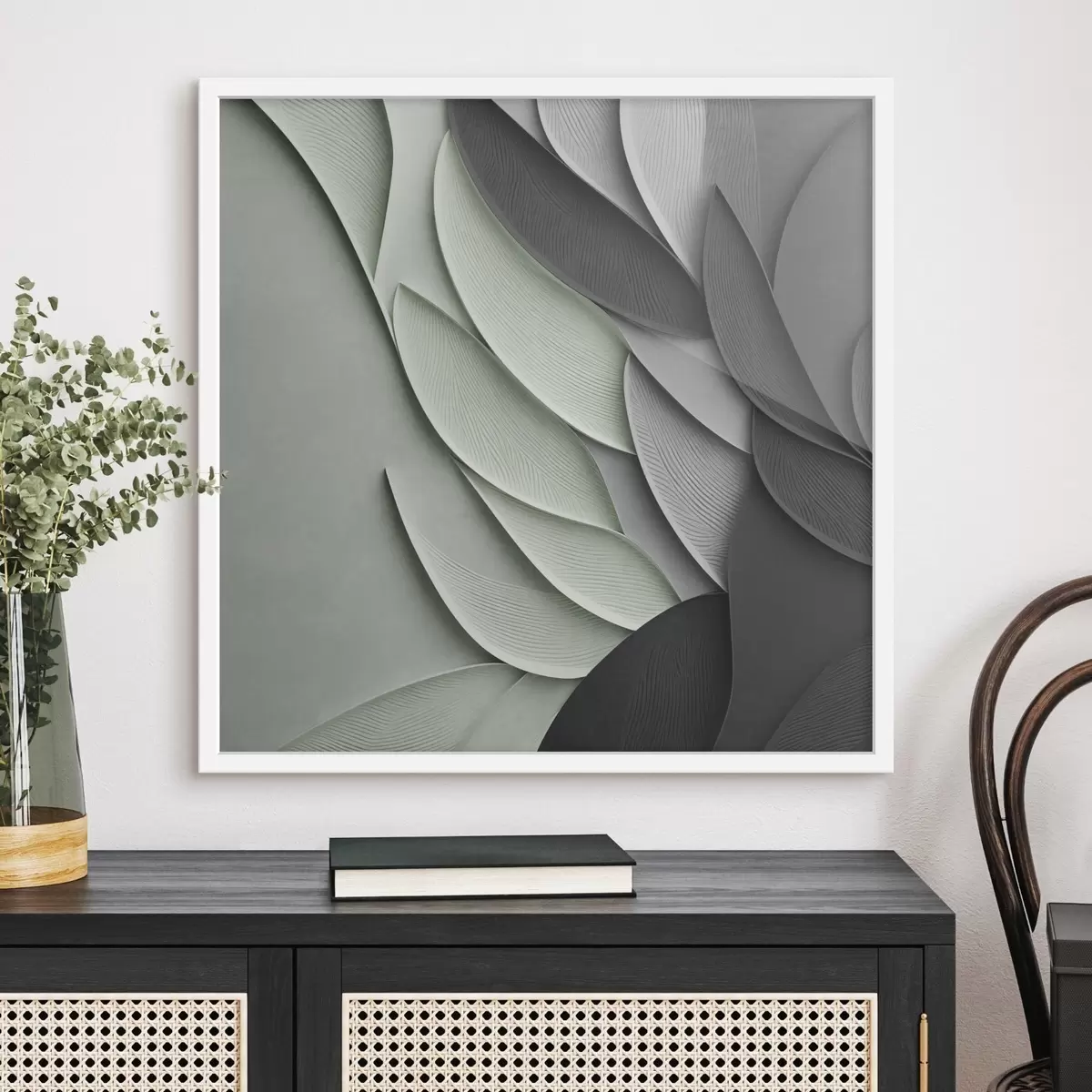 Poster Abstrakte, stilisierte Blätter in Grau-, Weiß- und gedämpften Grüntönen Nr f48412