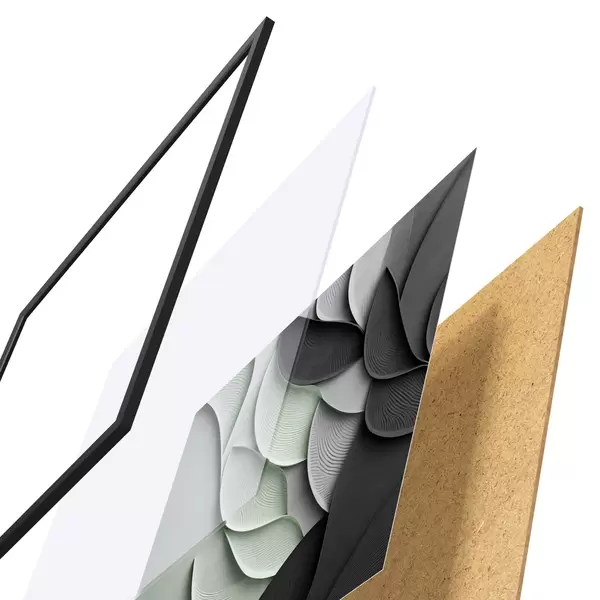 Das Poster besteht aus einem Rahmen, Plexiglas, einem gedruckten Bild und einer Rückwand aus Spanplatten. Dank der Halterungen auf der Rückseite kann das Poster sofort an die Wand gehängt werden.