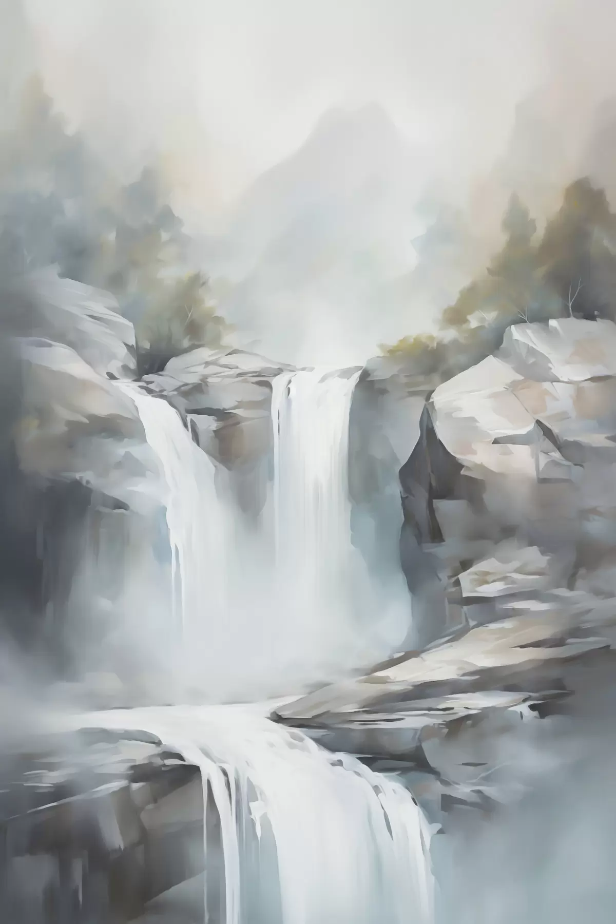 Poster Nachbildung eines Wasserfalls in einem Gemälde Nr f48416