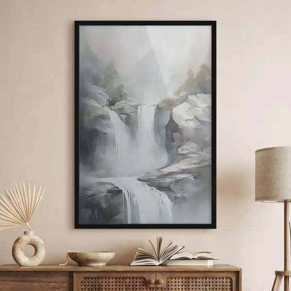 Poster Nachbildung eines Wasserfalls in einem Gemälde f48416