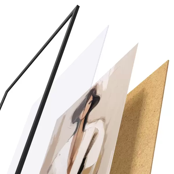 Das Poster besteht aus einem Rahmen, Plexiglas, einem gedruckten Bild und einer Rückwand aus Spanplatten. Dank der Halterungen auf der Rückseite kann das Poster sofort an die Wand gehängt werden.