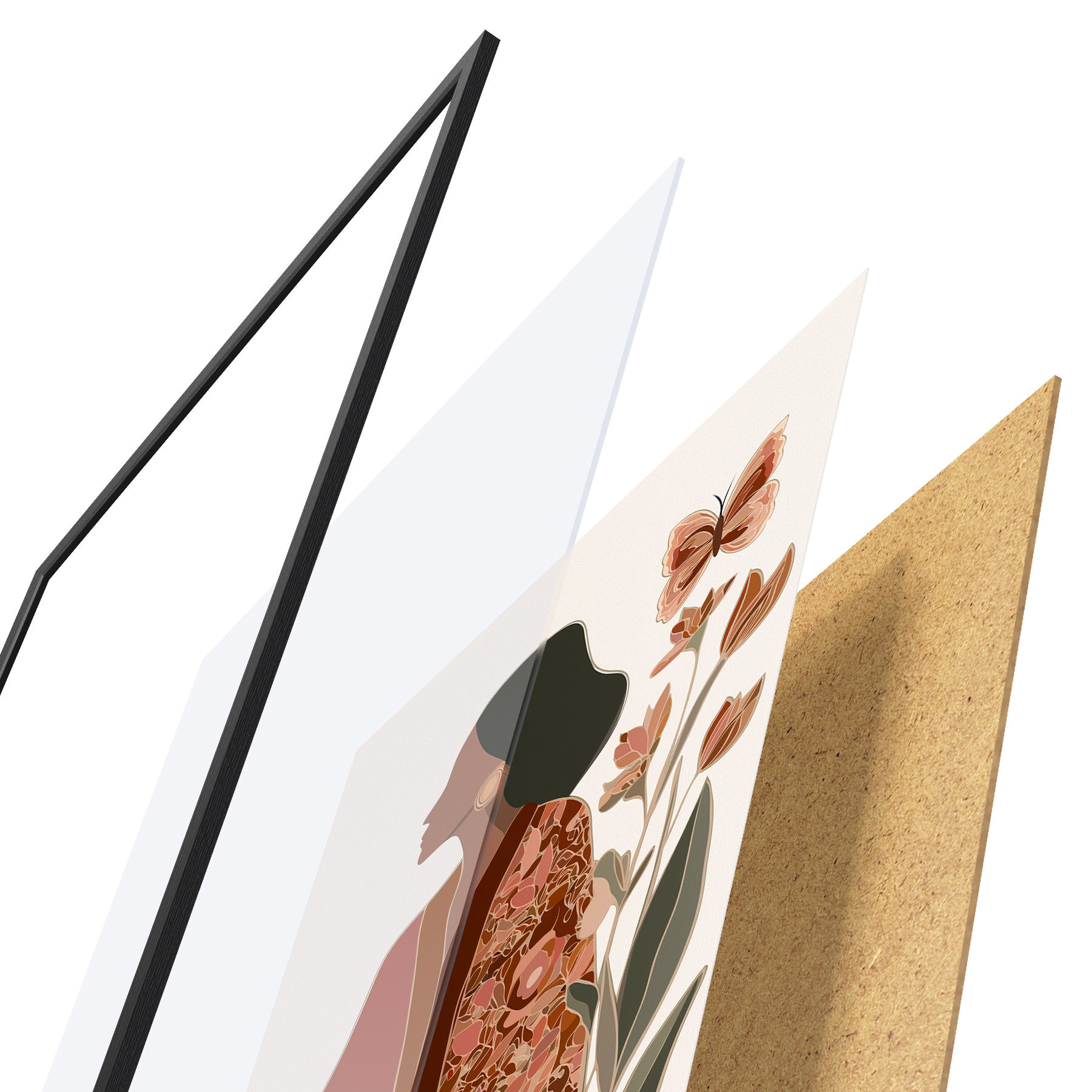 Das Poster besteht aus einem Rahmen, Plexiglas, einem gedruckten Bild und einer Rückwand aus Spanplatten. Dank der Halterungen auf der Rückseite kann das Poster sofort an die Wand gehängt werden.