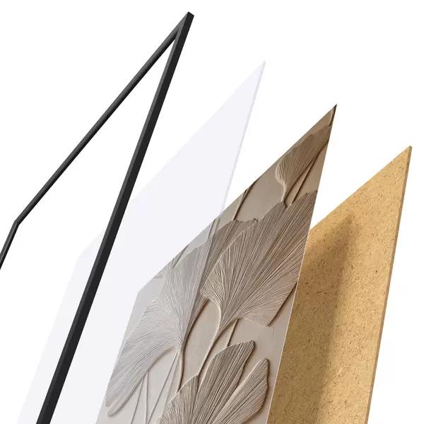 Das Poster besteht aus einem Rahmen, Plexiglas, einem gedruckten Bild und einer Rückwand aus Spanplatten. Dank der Halterungen auf der Rückseite kann das Poster sofort an die Wand gehängt werden.