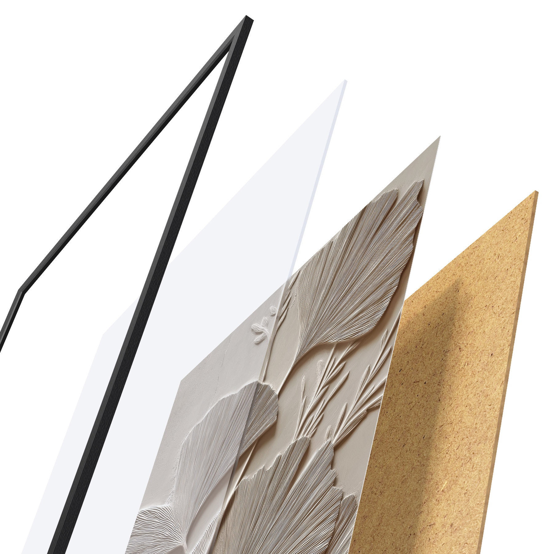 Das Poster besteht aus einem Rahmen, Plexiglas, einem gedruckten Bild und einer Rückwand aus Spanplatten. Dank der Halterungen auf der Rückseite kann das Poster sofort an die Wand gehängt werden.