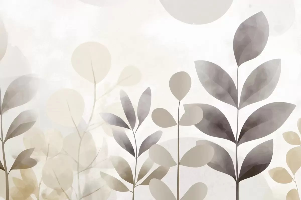 Poster Beige- und graue Blatt-Silhouetten, Minimalismus Nr f48487