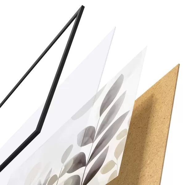 Das Poster besteht aus einem Rahmen, Plexiglas, einem gedruckten Bild und einer Rückwand aus Spanplatten. Dank der Halterungen auf der Rückseite kann das Poster sofort an die Wand gehängt werden.