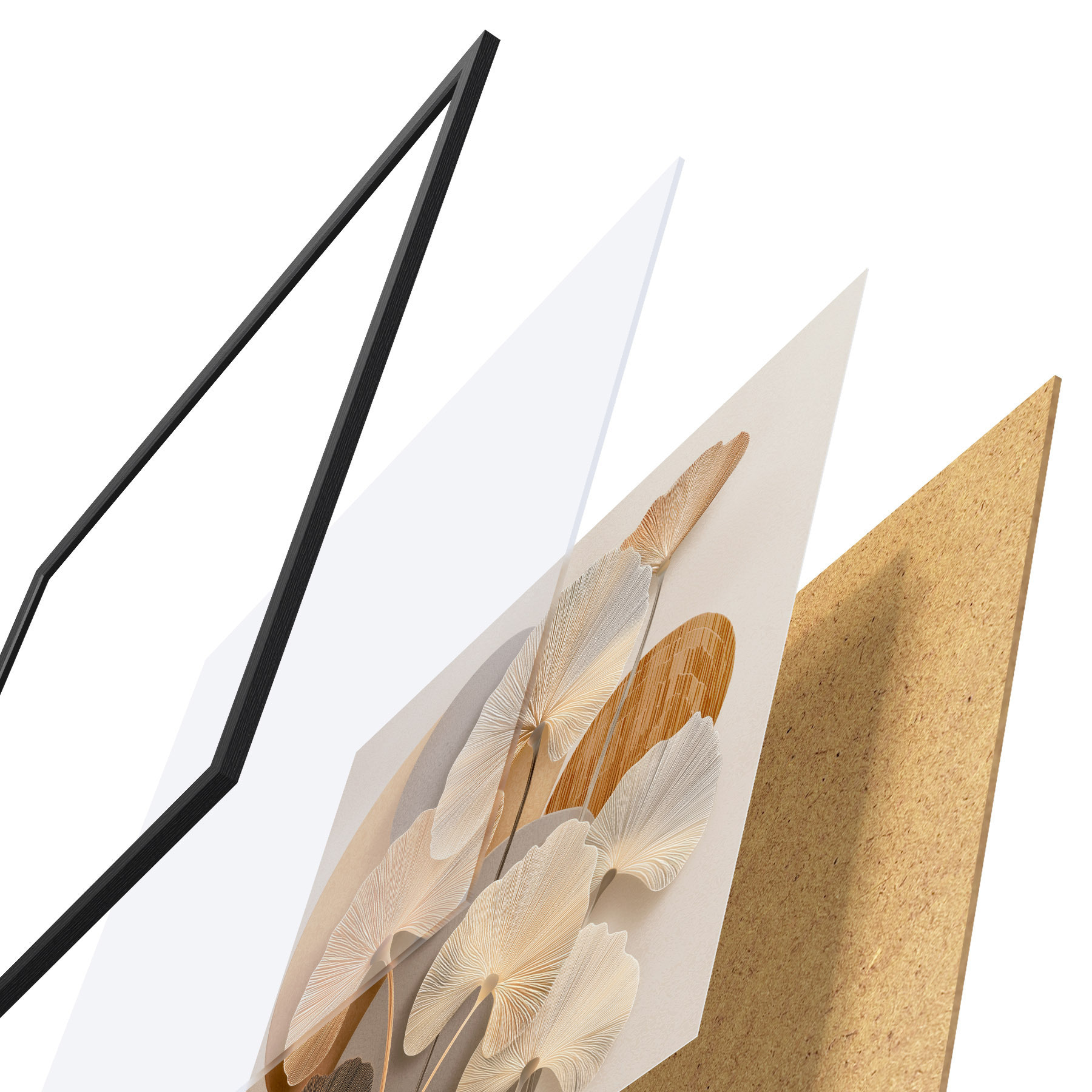 Das Poster besteht aus einem Rahmen, Plexiglas, einem gedruckten Bild und einer Rückwand aus Spanplatten. Dank der Halterungen auf der Rückseite kann das Poster sofort an die Wand gehängt werden.