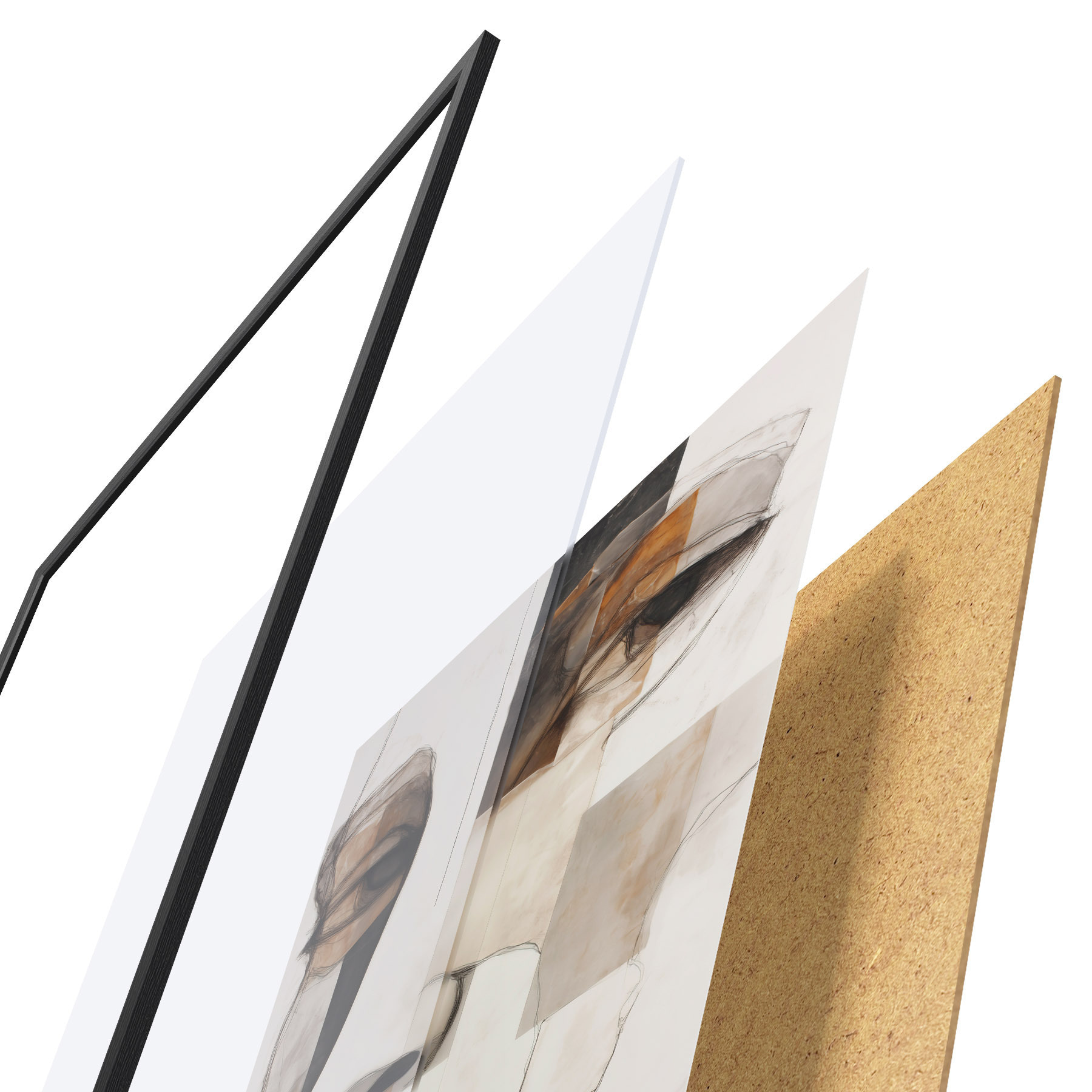 Das Poster besteht aus einem Rahmen, Plexiglas, einem gedruckten Bild und einer Rückwand aus Spanplatten. Dank der Halterungen auf der Rückseite kann das Poster sofort an die Wand gehängt werden.