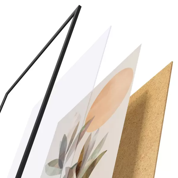 Das Poster besteht aus einem Rahmen, Plexiglas, einem gedruckten Bild und einer Rückwand aus Spanplatten. Dank der Halterungen auf der Rückseite kann das Poster sofort an die Wand gehängt werden.