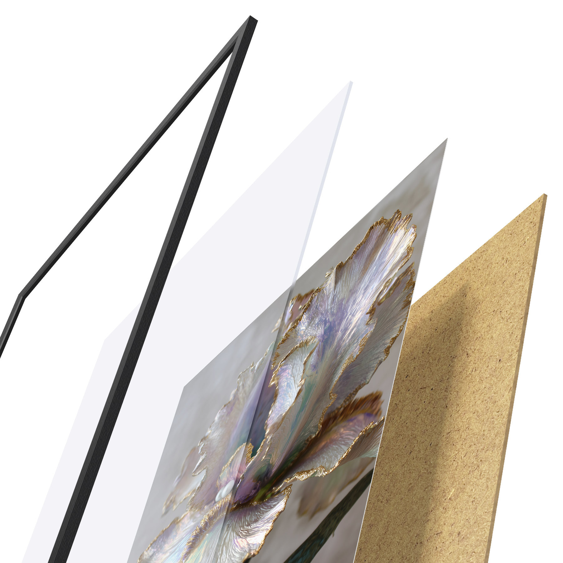 Das Poster besteht aus einem Rahmen, Plexiglas, einem gedruckten Bild und einer Rückwand aus Spanplatten. Dank der Halterungen auf der Rückseite kann das Poster sofort an die Wand gehängt werden.