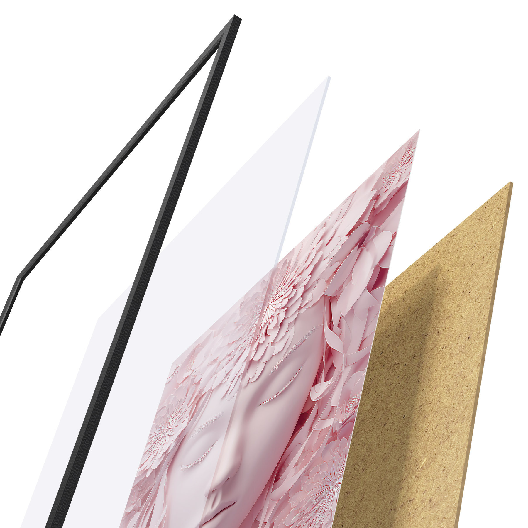 Das Poster besteht aus einem Rahmen, Plexiglas, einem gedruckten Bild und einer Rückwand aus Spanplatten. Dank der Halterungen auf der Rückseite kann das Poster sofort an die Wand gehängt werden.
