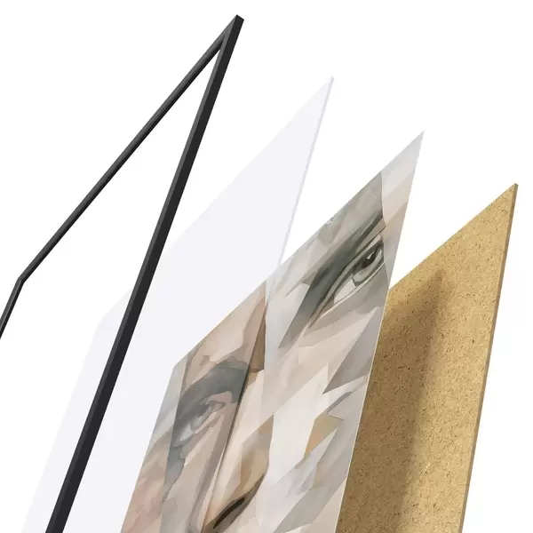 Das Poster besteht aus einem Rahmen, Plexiglas, einem gedruckten Bild und einer Rückwand aus Spanplatten. Dank der Halterungen auf der Rückseite kann das Poster sofort an die Wand gehängt werden.