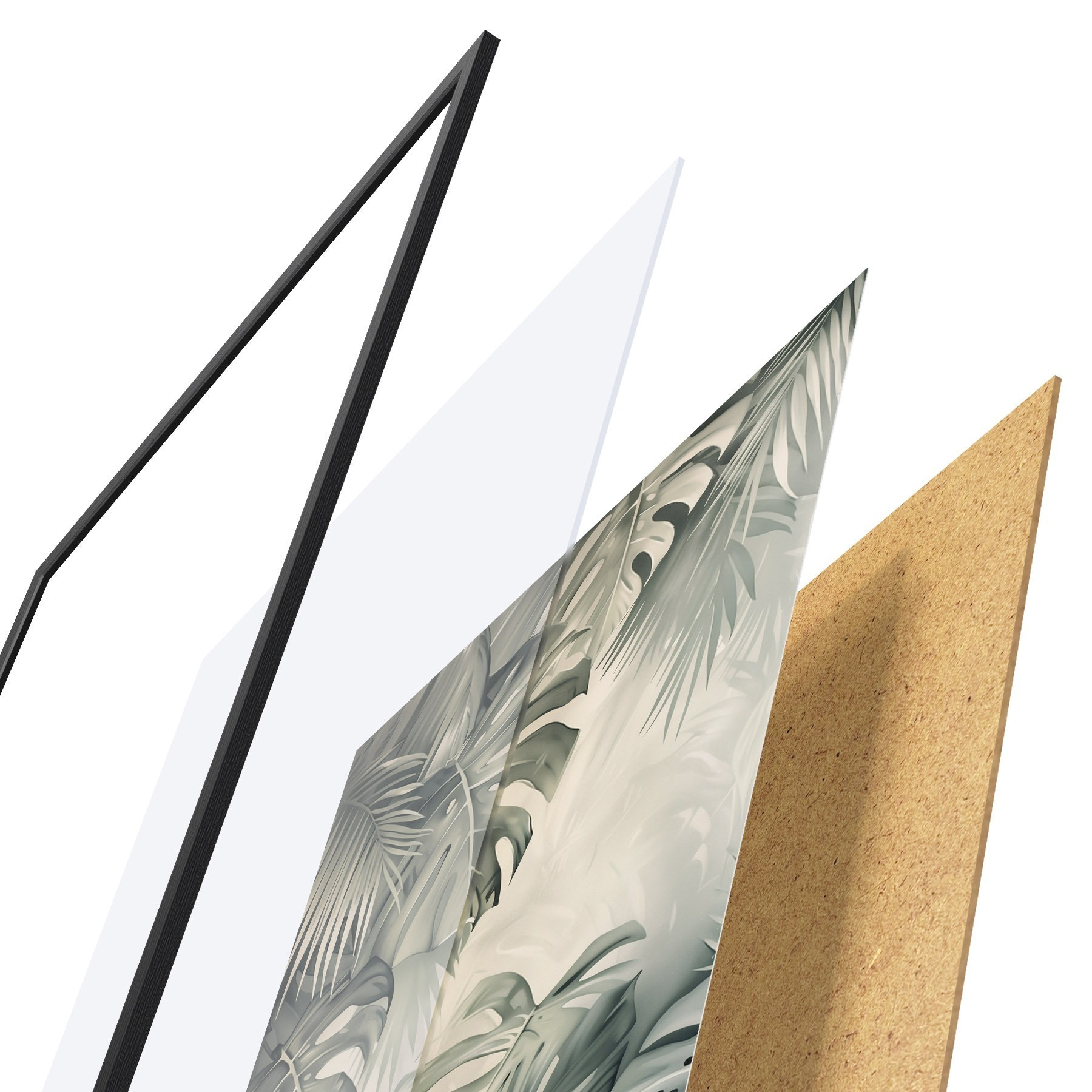 Das Poster besteht aus einem Rahmen, Plexiglas, einem gedruckten Bild und einer Rückwand aus Spanplatten. Dank der Halterungen auf der Rückseite kann das Poster sofort an die Wand gehängt werden.