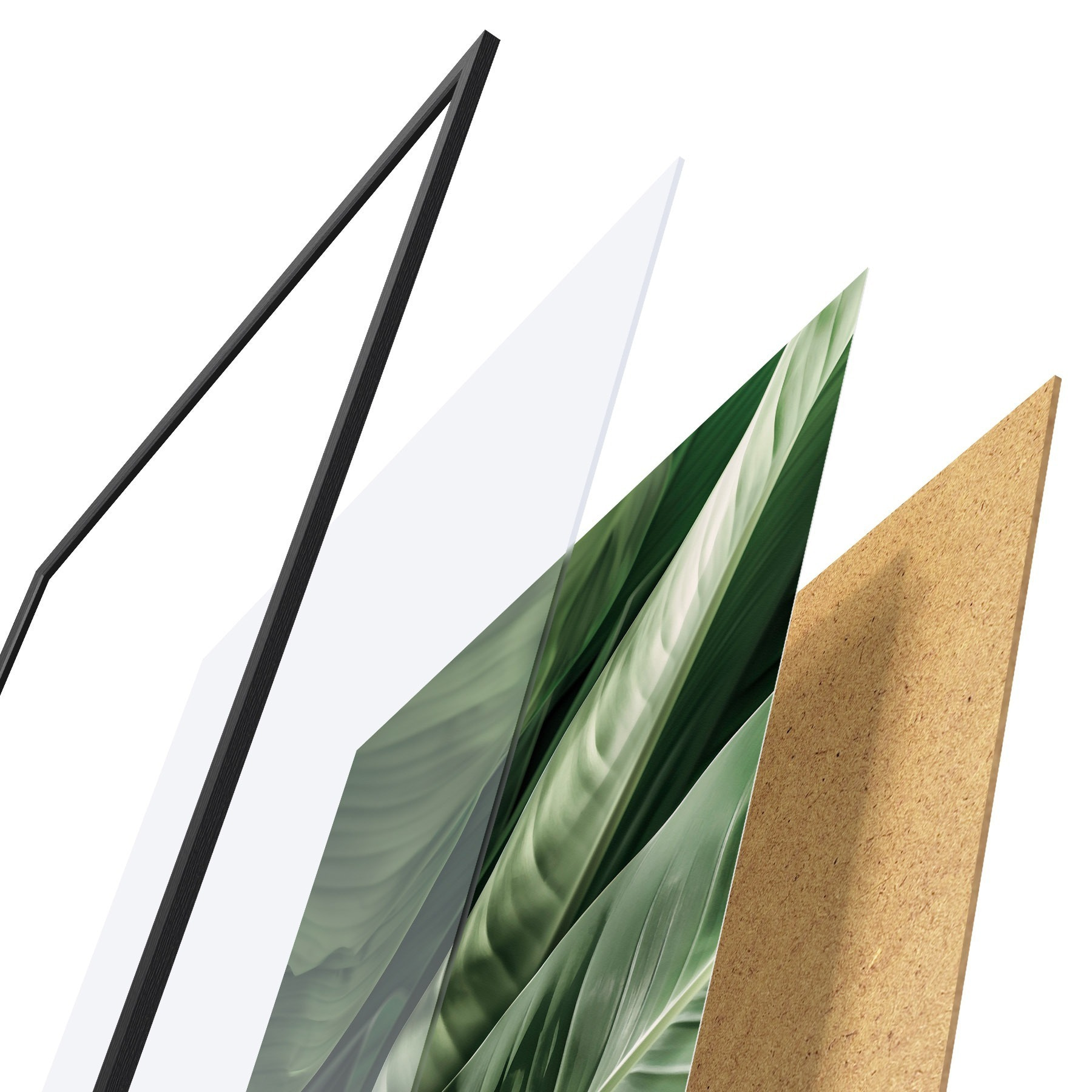 Das Poster besteht aus einem Rahmen, Plexiglas, einem gedruckten Bild und einer Rückwand aus Spanplatten. Dank der Halterungen auf der Rückseite kann das Poster sofort an die Wand gehängt werden.