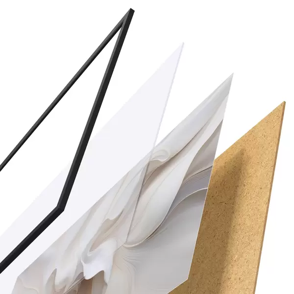 Das Poster besteht aus einem Rahmen, Plexiglas, einem gedruckten Bild und einer Rückwand aus Spanplatten. Dank der Halterungen auf der Rückseite kann das Poster sofort an die Wand gehängt werden.