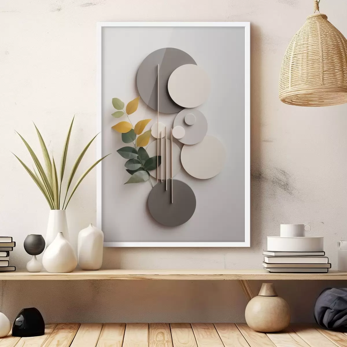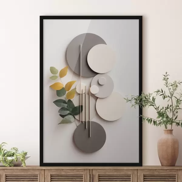 Poster Geometrische Kreise mit einem grünen, belaubten Zweig Nr f48598