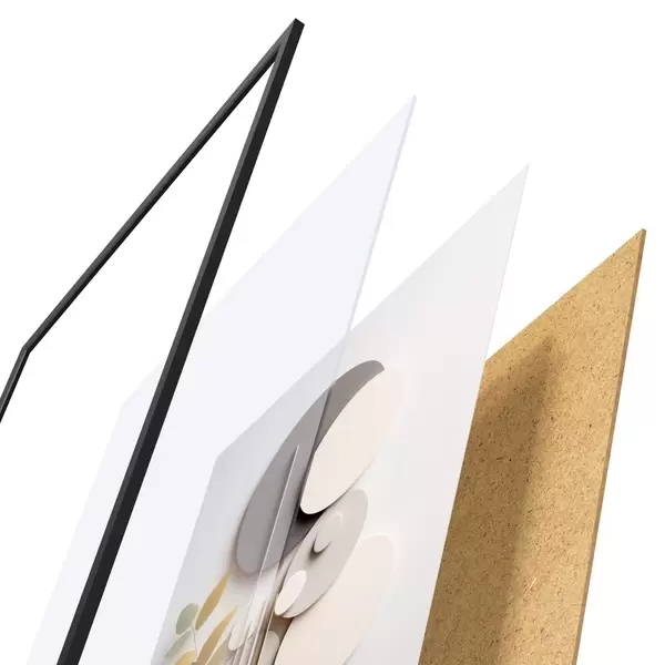 Das Poster besteht aus einem Rahmen, Plexiglas, einem gedruckten Bild und einer Rückwand aus Spanplatten. Dank der Halterungen auf der Rückseite kann das Poster sofort an die Wand gehängt werden.