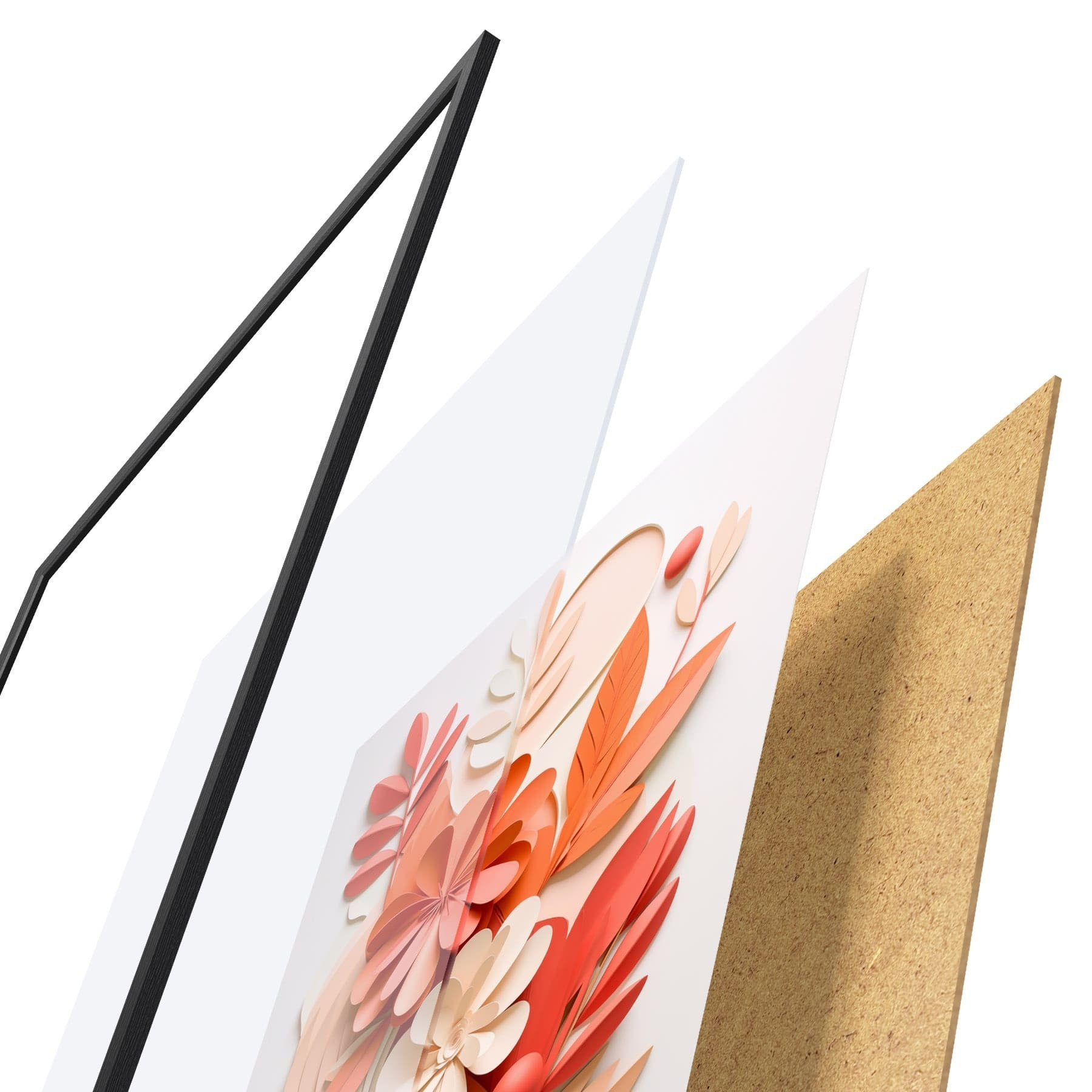 Das Poster besteht aus einem Rahmen, Plexiglas, einem gedruckten Bild und einer Rückwand aus Spanplatten. Dank der Halterungen auf der Rückseite kann das Poster sofort an die Wand gehängt werden.