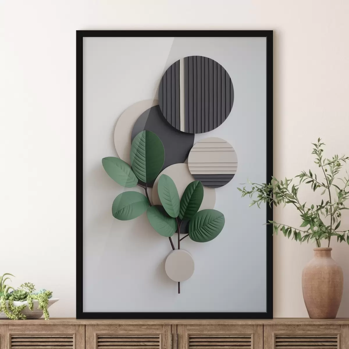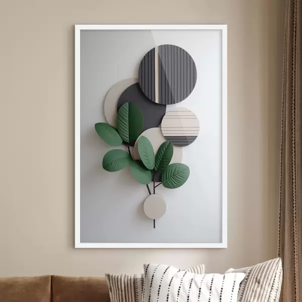 Poster Grüne Blätter mit runden, strukturierten Elementen Nr f48603