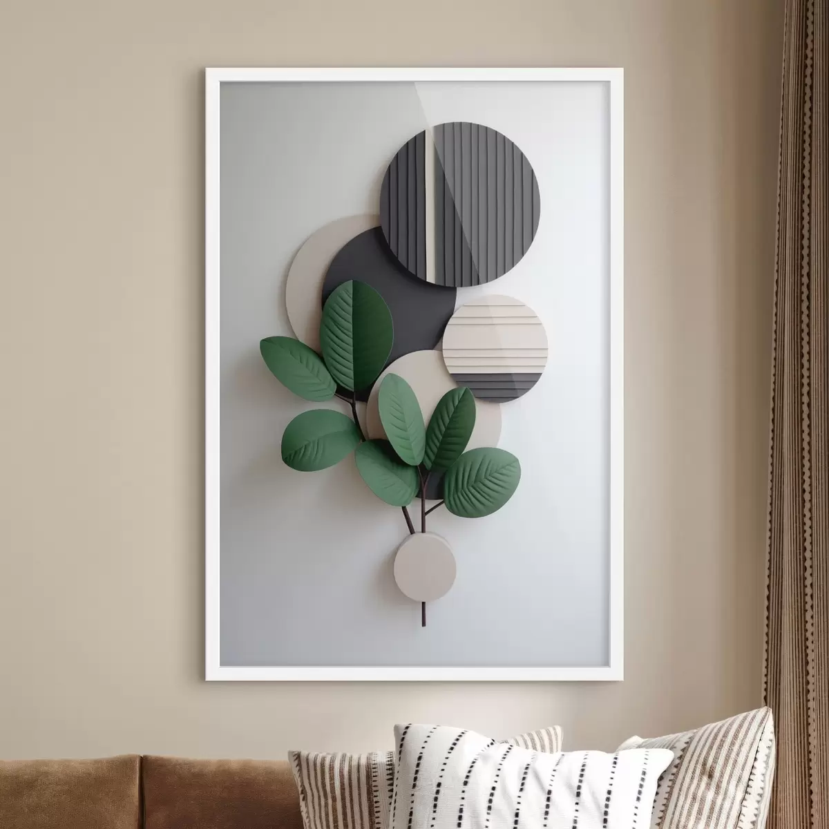 Poster Grüne Blätter mit runden, strukturierten Elementen f48603
