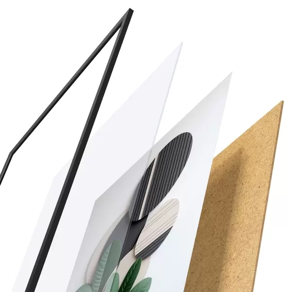 Das Poster besteht aus einem Rahmen, Plexiglas, einem gedruckten Bild und einer Rückwand aus Spanplatten. Dank der Halterungen auf der Rückseite kann das Poster sofort an die Wand gehängt werden.