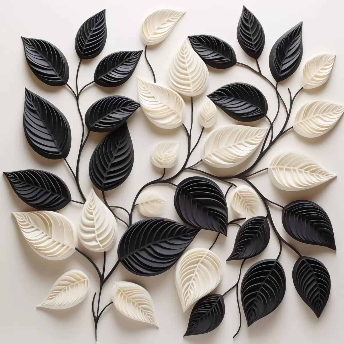 Poster Komposition aus schwarzen und hellen Blättern an Zweigen f48606
