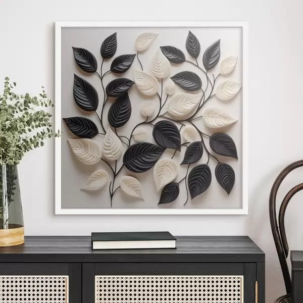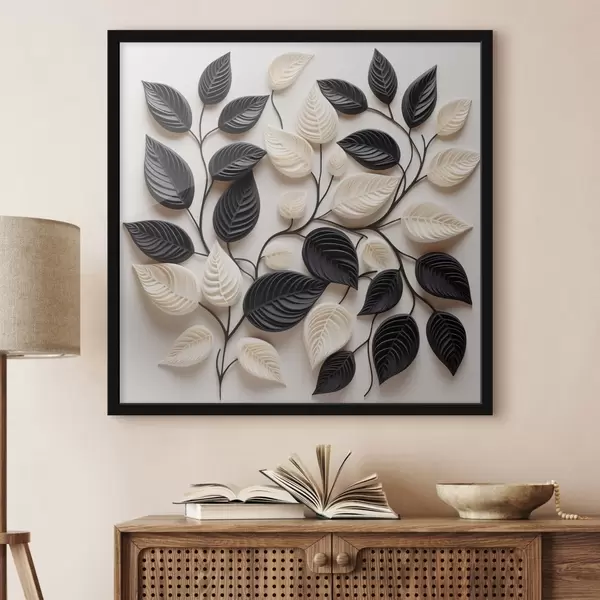 Poster Komposition aus schwarzen und hellen Blättern an Zweigen Nr f48606