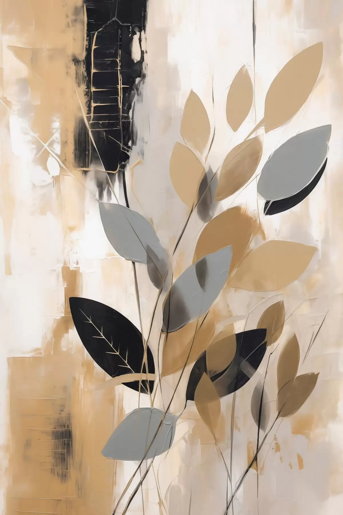 Poster Eine Abstraktion mit einem Zweig voller Blätter f48609