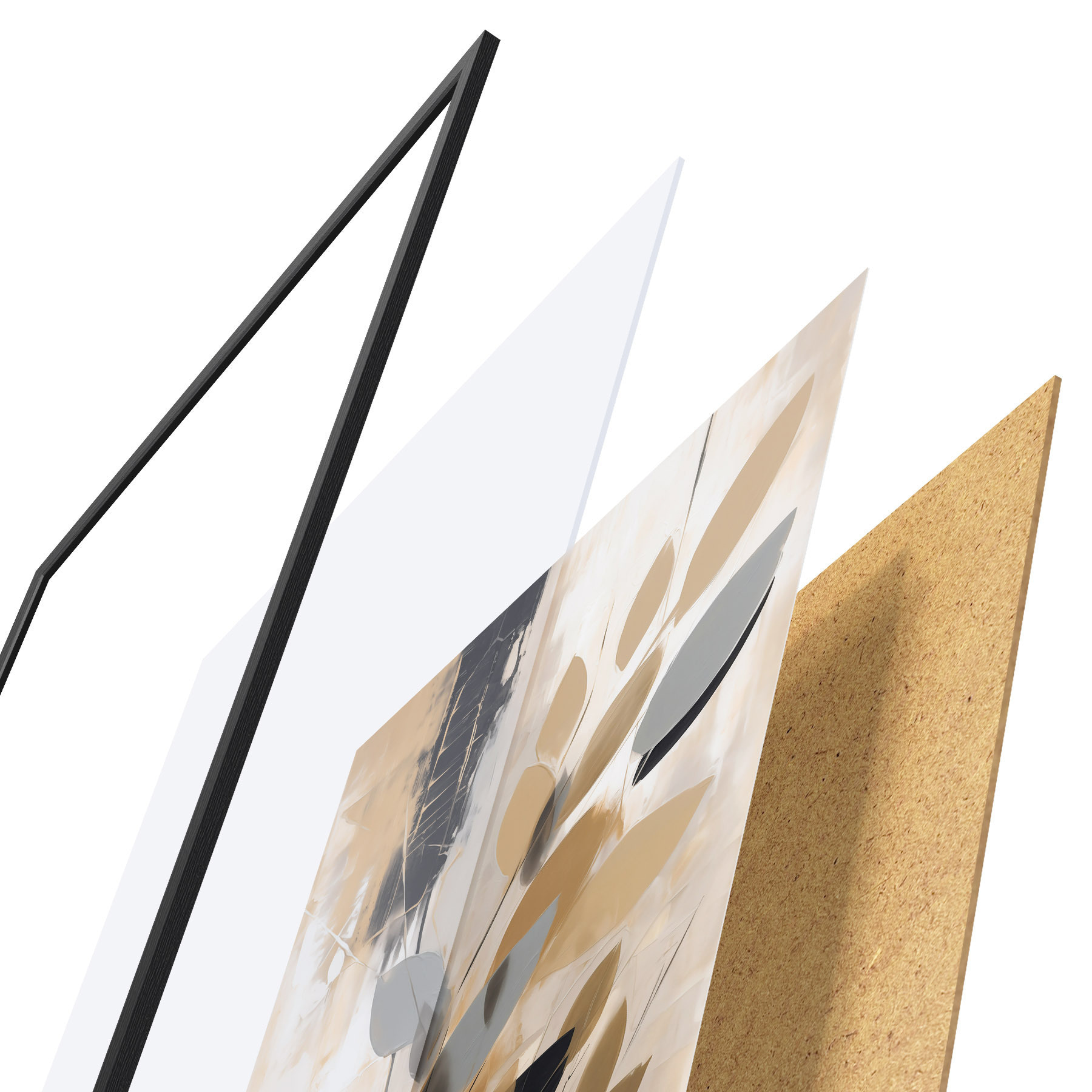 Das Poster besteht aus einem Rahmen, Plexiglas, einem gedruckten Bild und einer Rückwand aus Spanplatten. Dank der Halterungen auf der Rückseite kann das Poster sofort an die Wand gehängt werden.