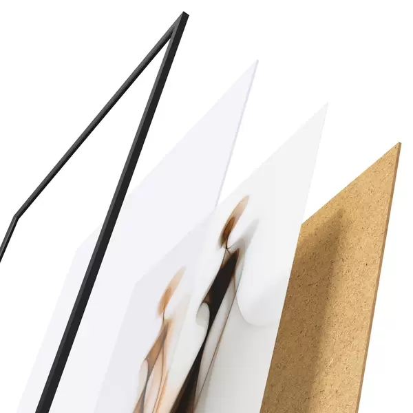 Das Poster besteht aus einem Rahmen, Plexiglas, einem gedruckten Bild und einer Rückwand aus Spanplatten. Dank der Halterungen auf der Rückseite kann das Poster sofort an die Wand gehängt werden.
