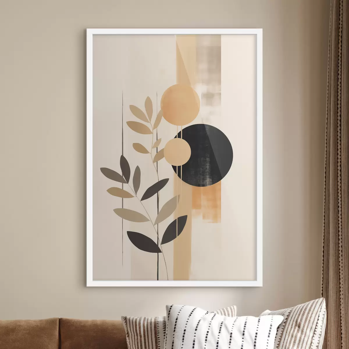 Poster Eine Abstraktion mit Blättern und Kreisen f48613
