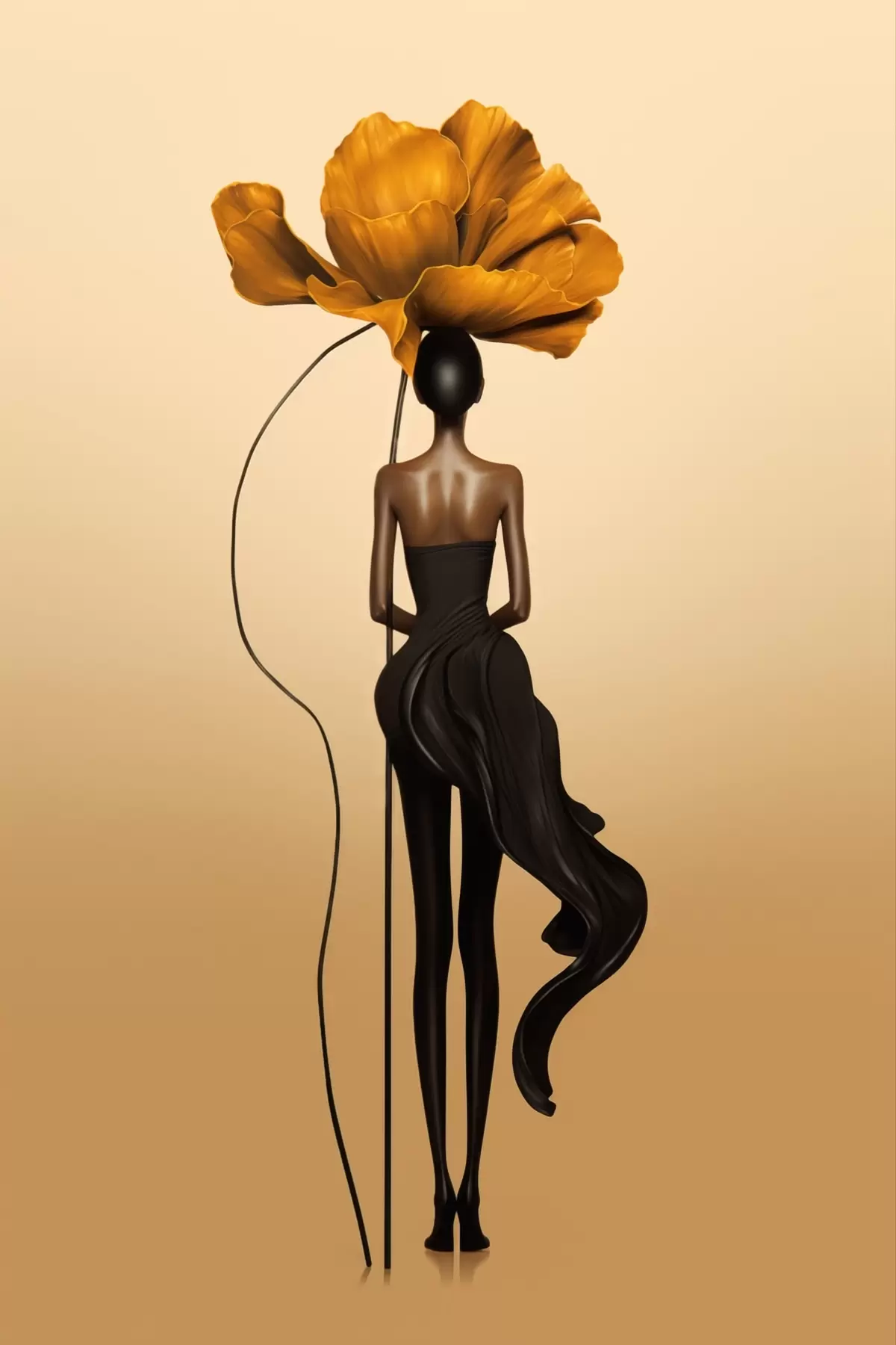 Poster Stilisierte Figur mit einer großen Blume als Kopf Nr f48618