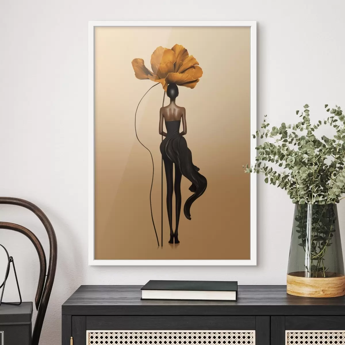 Poster Stilisierte Figur mit einer großen Blume als Kopf f48618
