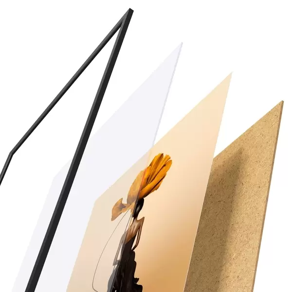 Das Poster besteht aus einem Rahmen, Plexiglas, einem gedruckten Bild und einer Rückwand aus Spanplatten. Dank der Halterungen auf der Rückseite kann das Poster sofort an die Wand gehängt werden.