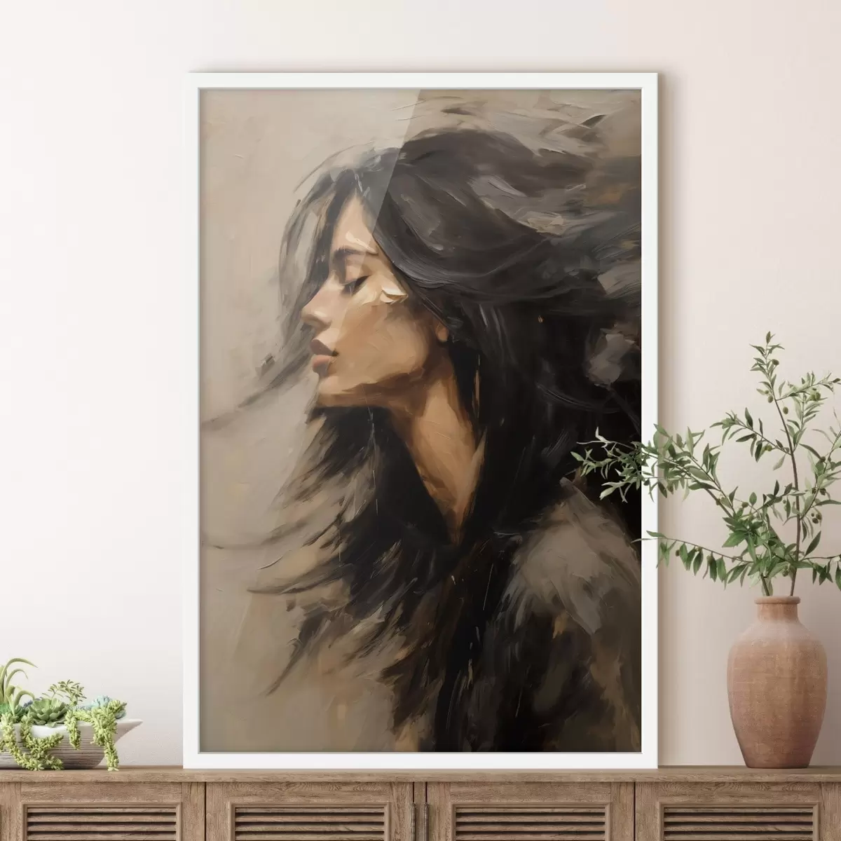 Poster Frauenporträt mit wallendem Haar im malerischen Stil Nr f48622