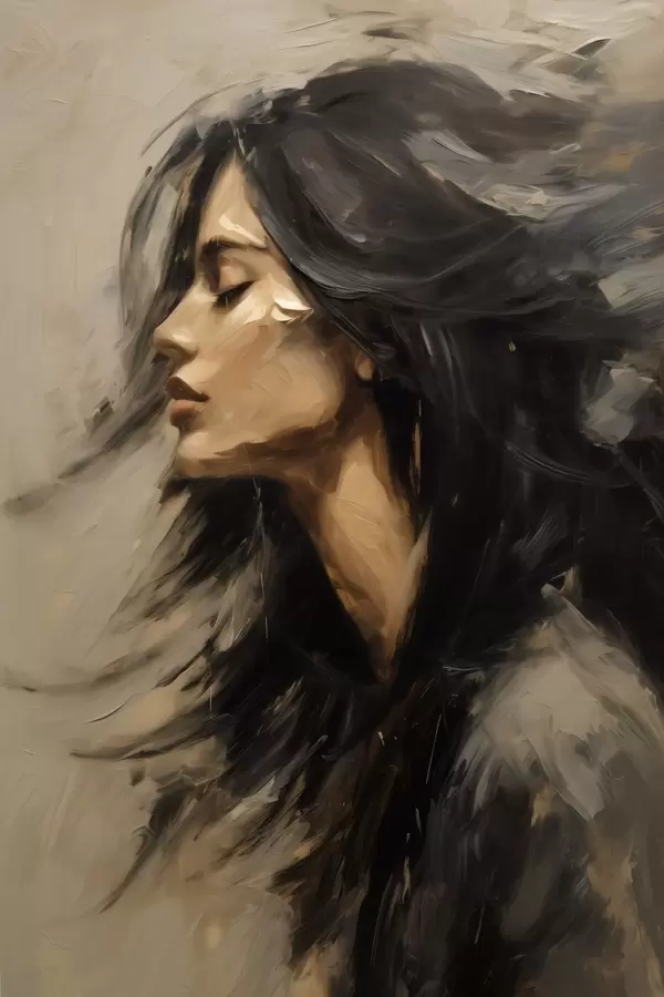 Poster Frauenporträt mit wallendem Haar im malerischen Stil f48622