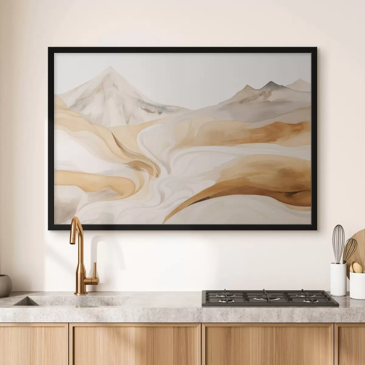 Poster Stilisierte Landschaft mit Bergen und fließenden Linien Nr f48626