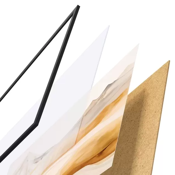 Das Poster besteht aus einem Rahmen, Plexiglas, einem gedruckten Bild und einer Rückwand aus Spanplatten. Dank der Halterungen auf der Rückseite kann das Poster sofort an die Wand gehängt werden.