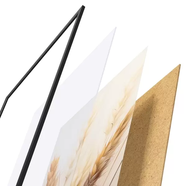 Das Poster besteht aus einem Rahmen, Plexiglas, einem gedruckten Bild und einer Rückwand aus Spanplatten. Dank der Halterungen auf der Rückseite kann das Poster sofort an die Wand gehängt werden.