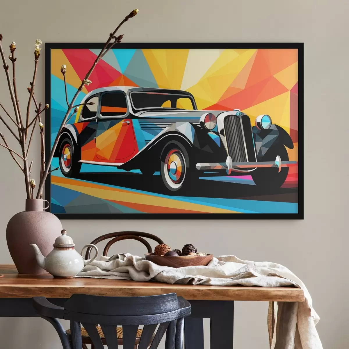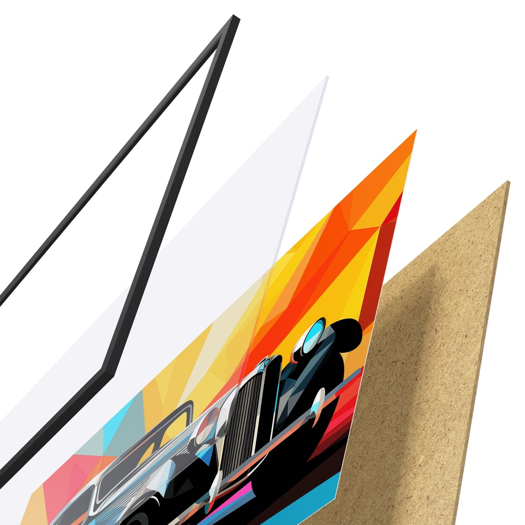 Das Poster besteht aus einem Rahmen, Plexiglas, einem gedruckten Bild und einer Rückwand aus Spanplatten. Dank der Halterungen auf der Rückseite kann das Poster sofort an die Wand gehängt werden.