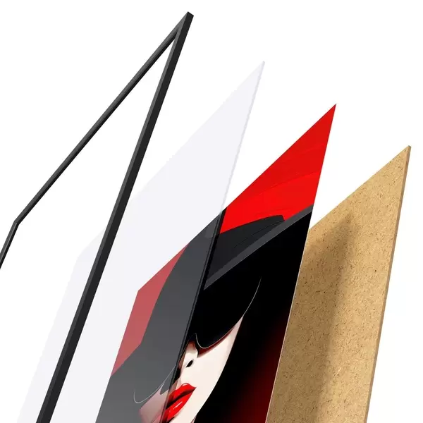 Das Poster besteht aus einem Rahmen, Plexiglas, einem gedruckten Bild und einer Rückwand aus Spanplatten. Dank der Halterungen auf der Rückseite kann das Poster sofort an die Wand gehängt werden.