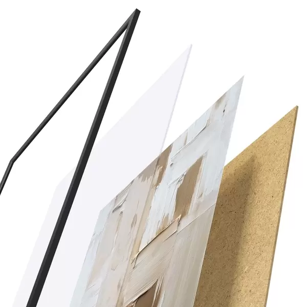 Das Poster besteht aus einem Rahmen, Plexiglas, einem gedruckten Bild und einer Rückwand aus Spanplatten. Dank der Halterungen auf der Rückseite kann das Poster sofort an die Wand gehängt werden.