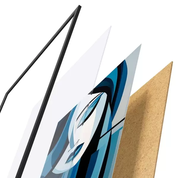 Das Poster besteht aus einem Rahmen, Plexiglas, einem gedruckten Bild und einer Rückwand aus Spanplatten. Dank der Halterungen auf der Rückseite kann das Poster sofort an die Wand gehängt werden.