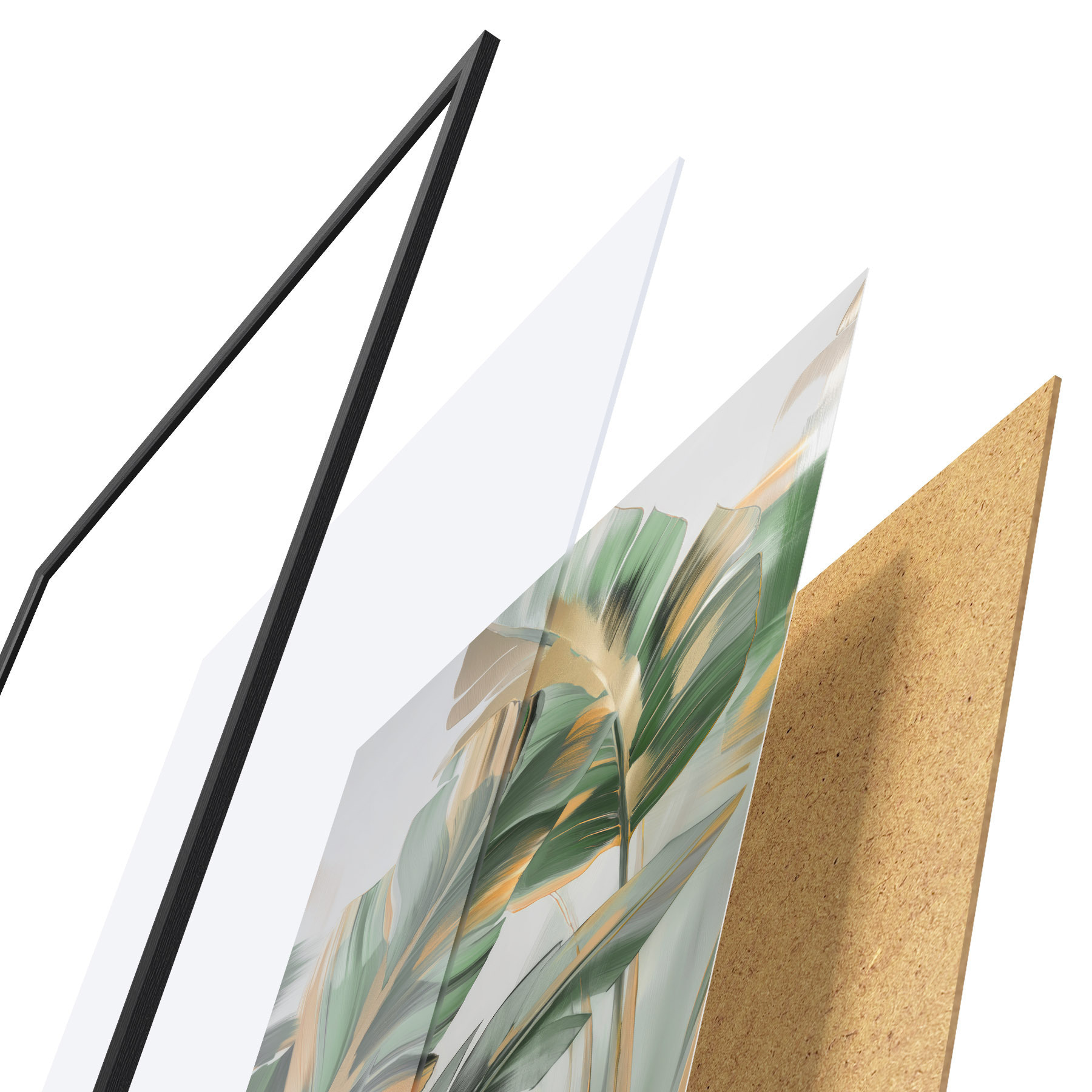 Das Poster besteht aus einem Rahmen, Plexiglas, einem gedruckten Bild und einer Rückwand aus Spanplatten. Dank der Halterungen auf der Rückseite kann das Poster sofort an die Wand gehängt werden.