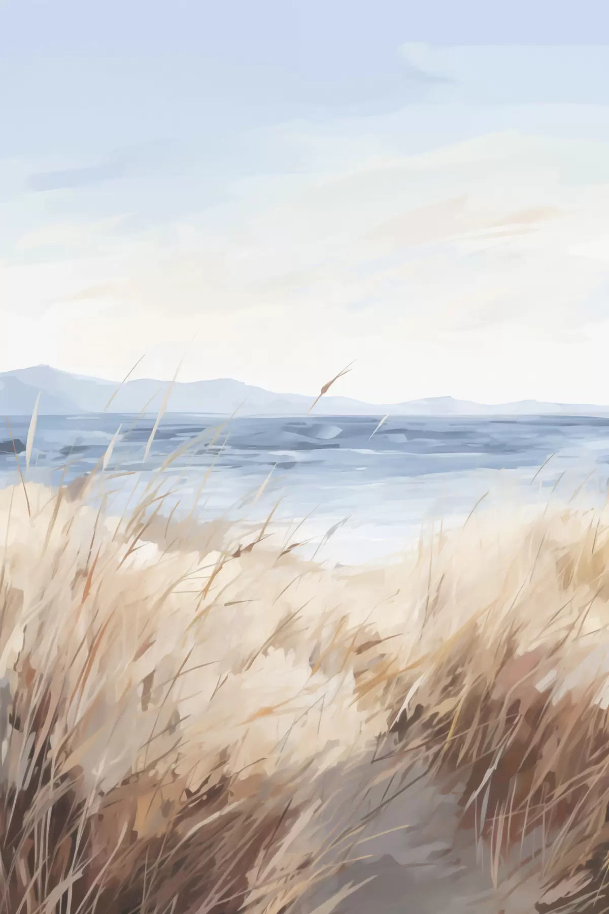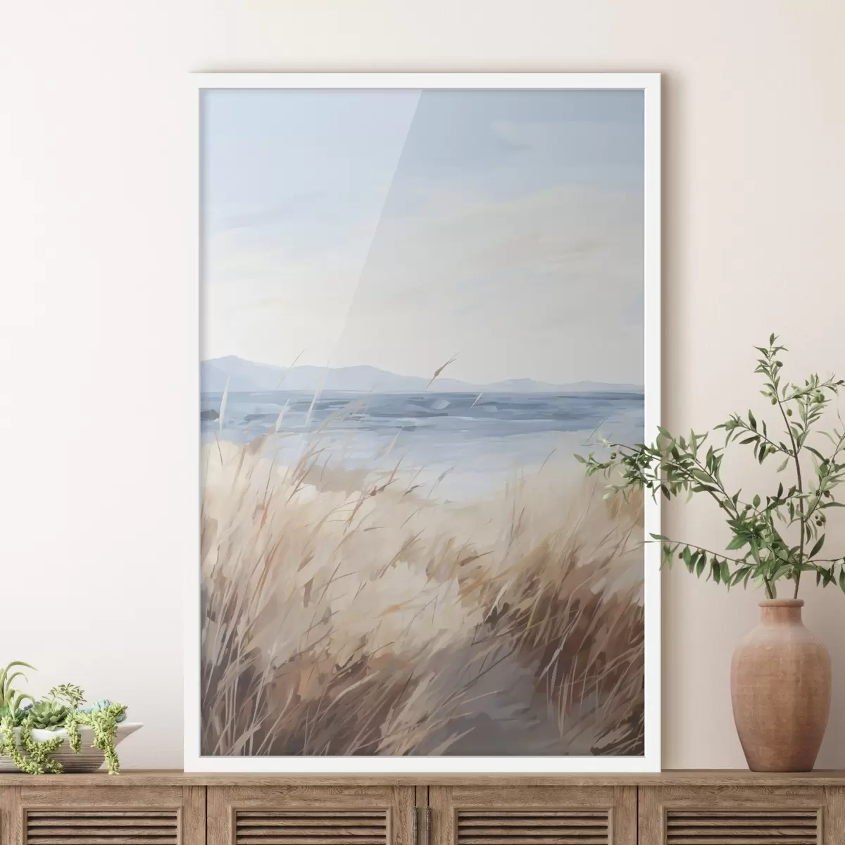 Poster Nachbildung einer Küstenlandschaft in der Malerei f48678