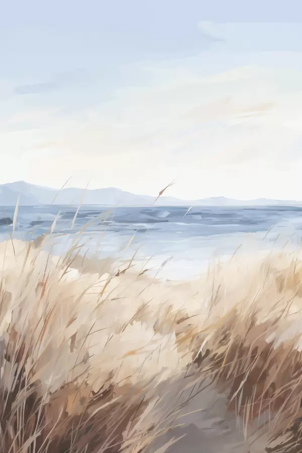 Poster Nachbildung einer Küstenlandschaft in der Malerei f48678
