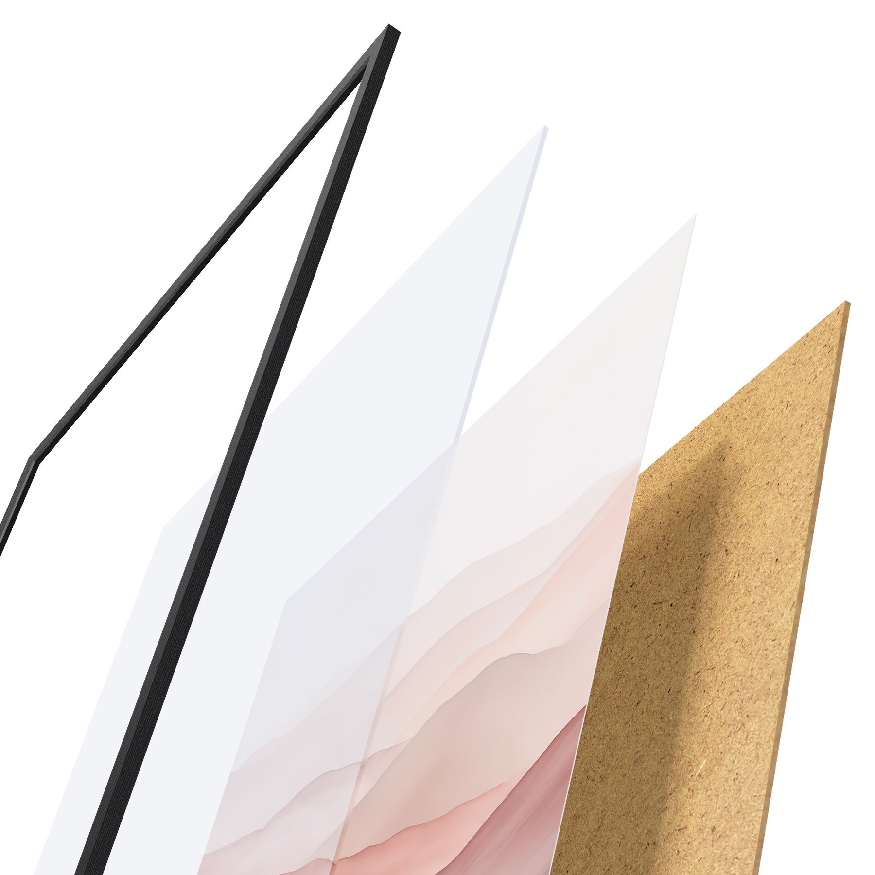 Das Poster besteht aus einem Rahmen, Plexiglas, einem gedruckten Bild und einer Rückwand aus Spanplatten. Dank der Halterungen auf der Rückseite kann das Poster sofort an die Wand gehängt werden.