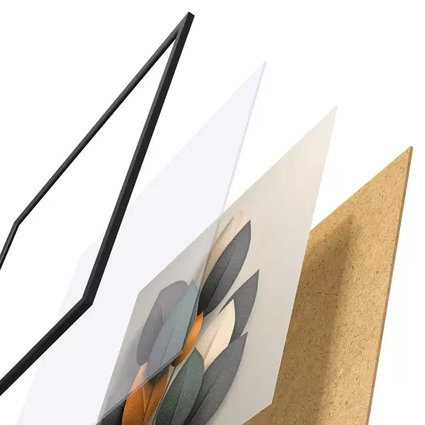 Das Poster besteht aus einem Rahmen, Plexiglas, einem gedruckten Bild und einer Rückwand aus Spanplatten. Dank der Halterungen auf der Rückseite kann das Poster sofort an die Wand gehängt werden.