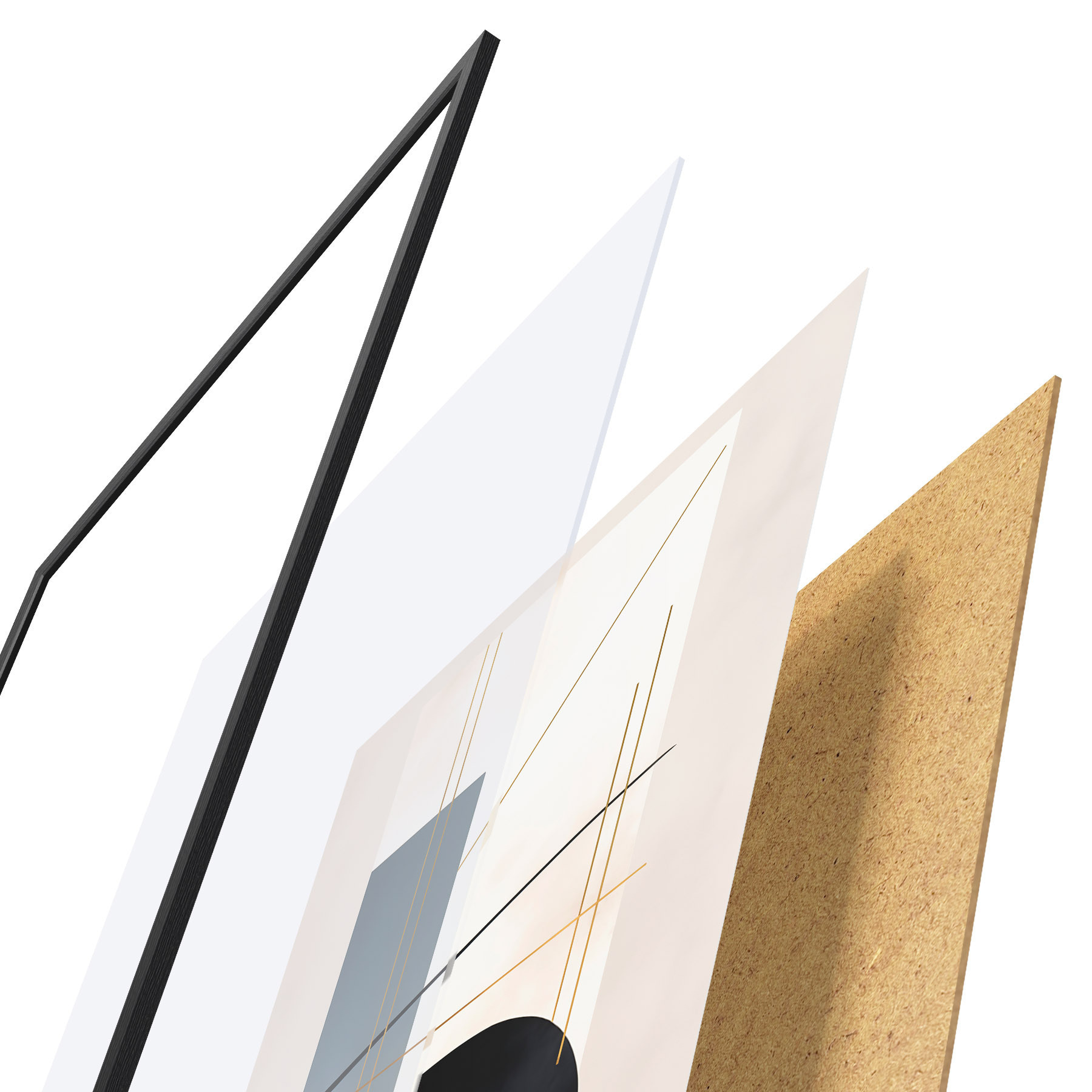 Das Poster besteht aus einem Rahmen, Plexiglas, einem gedruckten Bild und einer Rückwand aus Spanplatten. Dank der Halterungen auf der Rückseite kann das Poster sofort an die Wand gehängt werden.