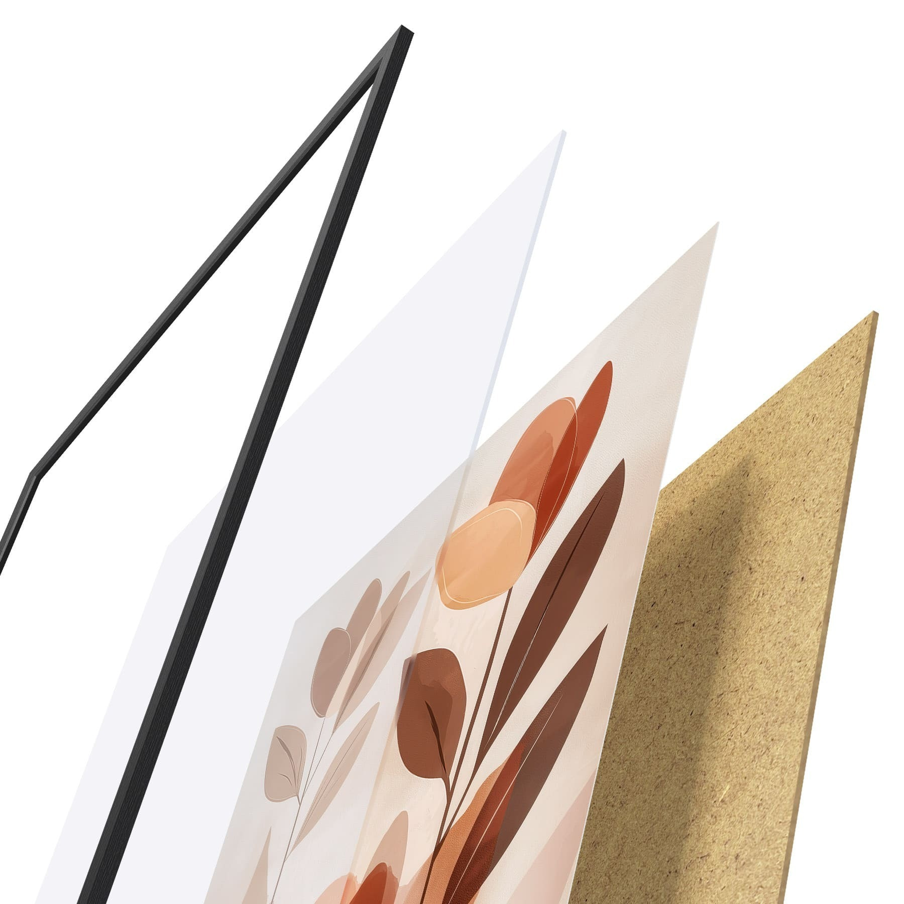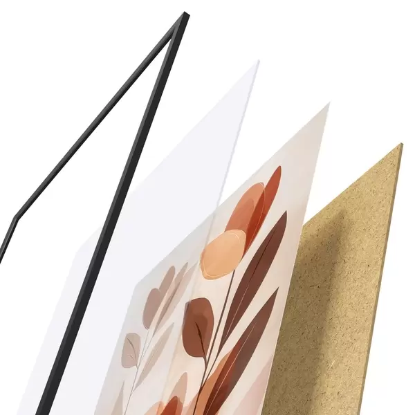 Das Poster besteht aus einem Rahmen, Plexiglas, einem gedruckten Bild und einer Rückwand aus Spanplatten. Dank der Halterungen auf der Rückseite kann das Poster sofort an die Wand gehängt werden.